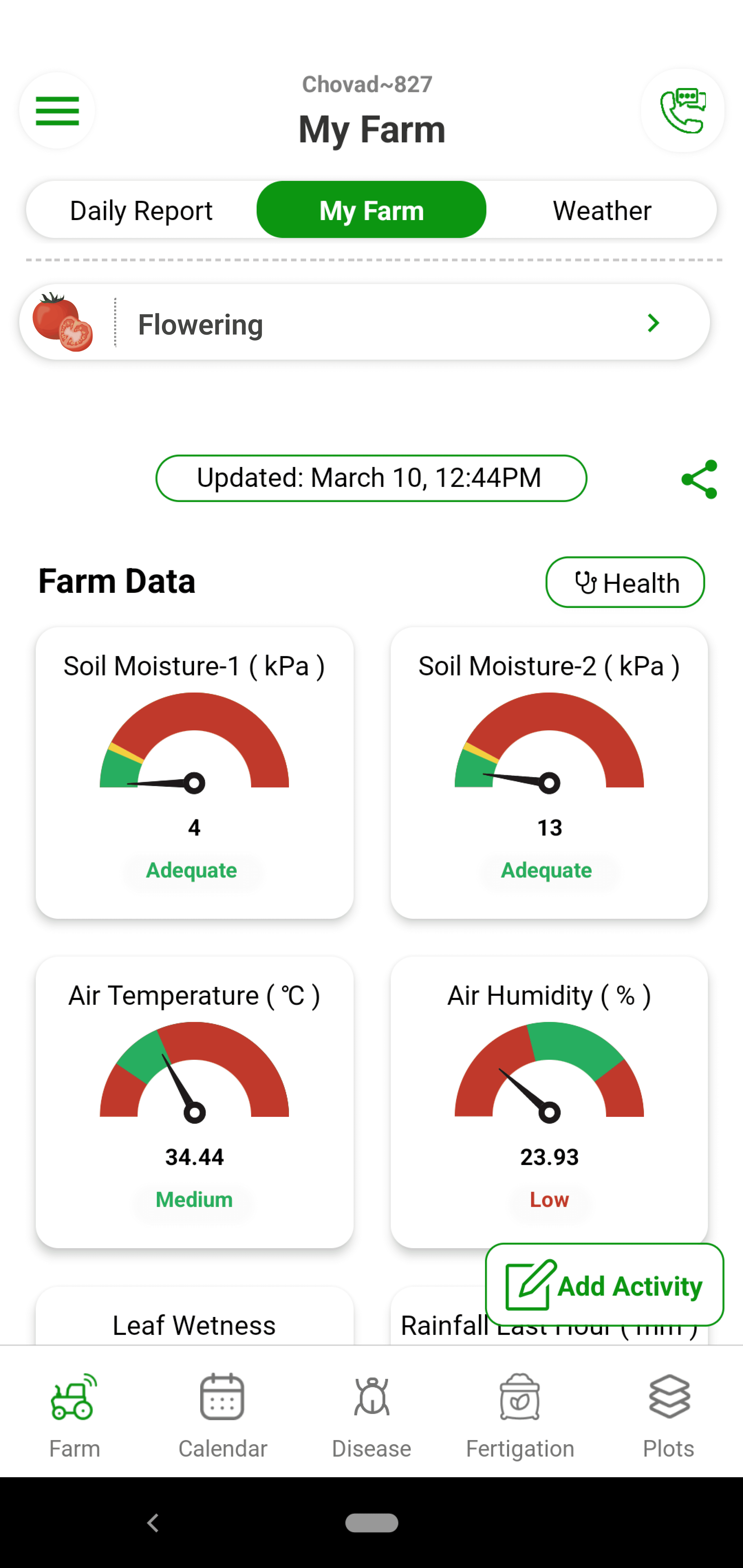 Rainfall in critical stages can impact the Tomato crop badly. Also, leaf wetness and high humidity lead to fungal diseases. Bearing of flowers also depends temperature. Fyllo’s farm level weather monitoring and predictions for next 2 weeks will help you plan for the next actions.